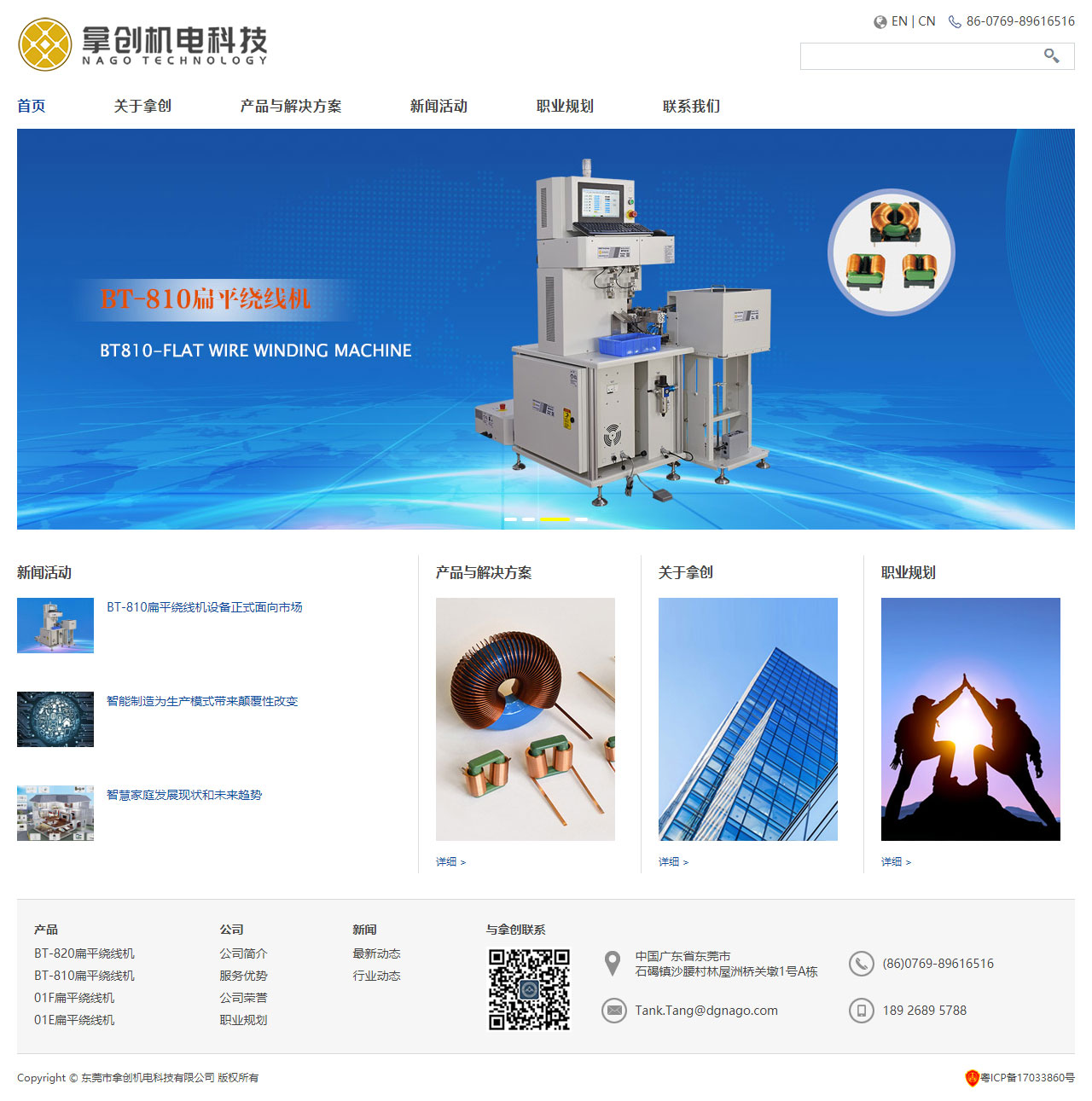 拿創(chuàng)(NAGO)以多年的機械自動化專業(yè)知識為基礎(chǔ),開發(fā)、制造標(biāo)準(zhǔn)和定制自動化整體解決方案,尤其專注于扁平線方形線圈、扁平線環(huán)形線圈、大功率扁平線線圈、磁芯閉合式冷擠壓繞線業(yè)務(wù)。