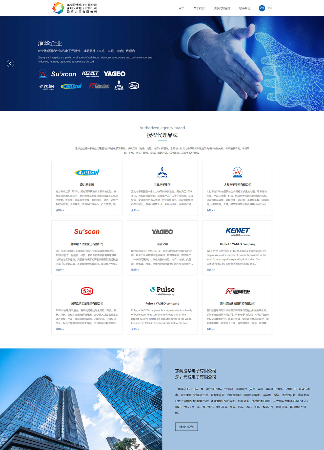 澄華企業(yè)是一家專業(yè)代理國內(nèi)外專業(yè)電子元器件、被動(dòng)元件(電感、電阻、電容)代理商。公司與大批實(shí)力雄厚的客戶建立了良好的合作關(guān)系,客戶遍及手機(jī)、手機(jī)周邊、家電、汽車、通訊、安防、數(shù)碼產(chǎn)品、醫(yī)療器械、耳機(jī)等各個(gè)領(lǐng)域。