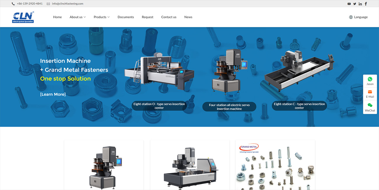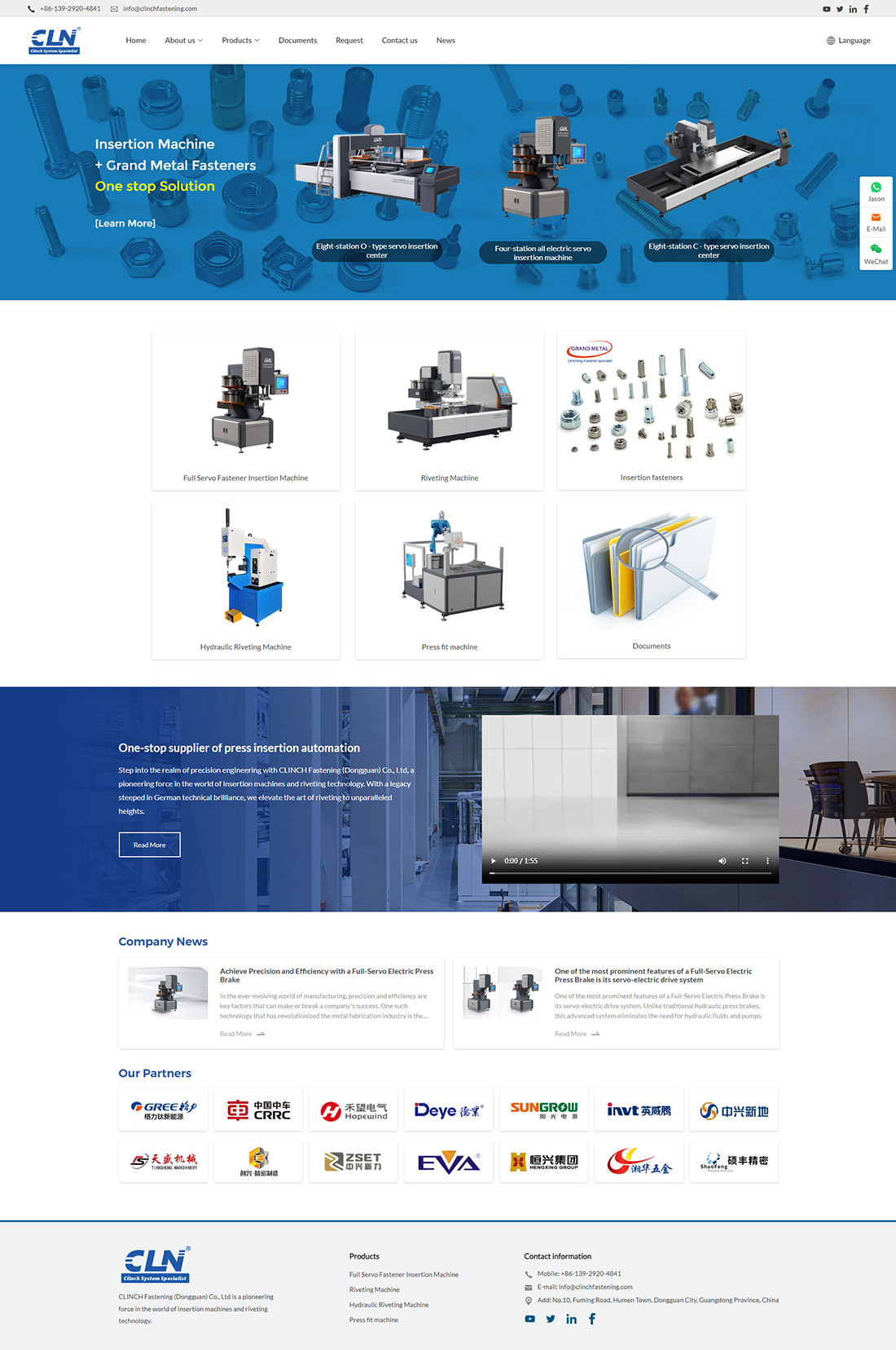 服務(wù)內(nèi)容:外貿(mào)英文網(wǎng)站設(shè)計(jì)、機(jī)械設(shè)備網(wǎng)站設(shè)計(jì) CLINCH Fastening (Dongguan) Co., Ltd is a pioneering force in the world of insertion machines and riveting technology. Step into the realm of precision engineering with Clinch Fastening (Dongguan) Co., Ltd, a pioneering force in the world of insertion machines and riveting technology. With a legacy steeped in German technical brilliance, we elevate the art of riveting to unparalleled heights.