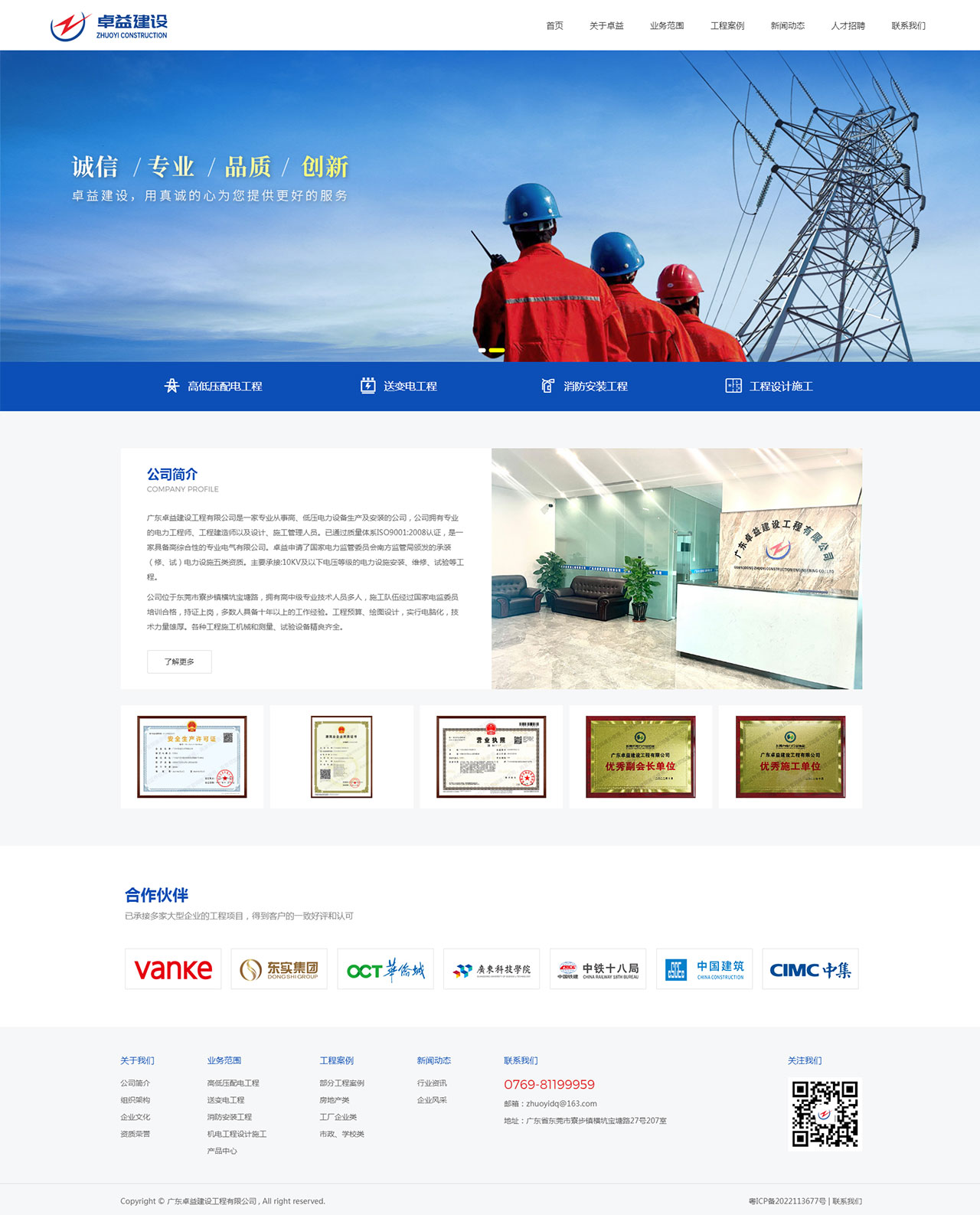廣東卓益建設工程有限公司是一家專業(yè)從事高、低壓電力設備生產(chǎn)及安裝的公司,公司擁有專業(yè)的電力工程師、工程建造師以及設計、施工管理人員。已通過質量體系 1SO9001 : 2008 認證,是一家具備高綜合性的專業(yè)電氣有限公司。卓益申取了國家電力監(jiān)管委員會南方監(jiān)管局頒發(fā)的承裝(修、試)電力設施五類資質。主要承接:10KV及以下電壓等級的電力設施安裝、維修、試驗等工程。