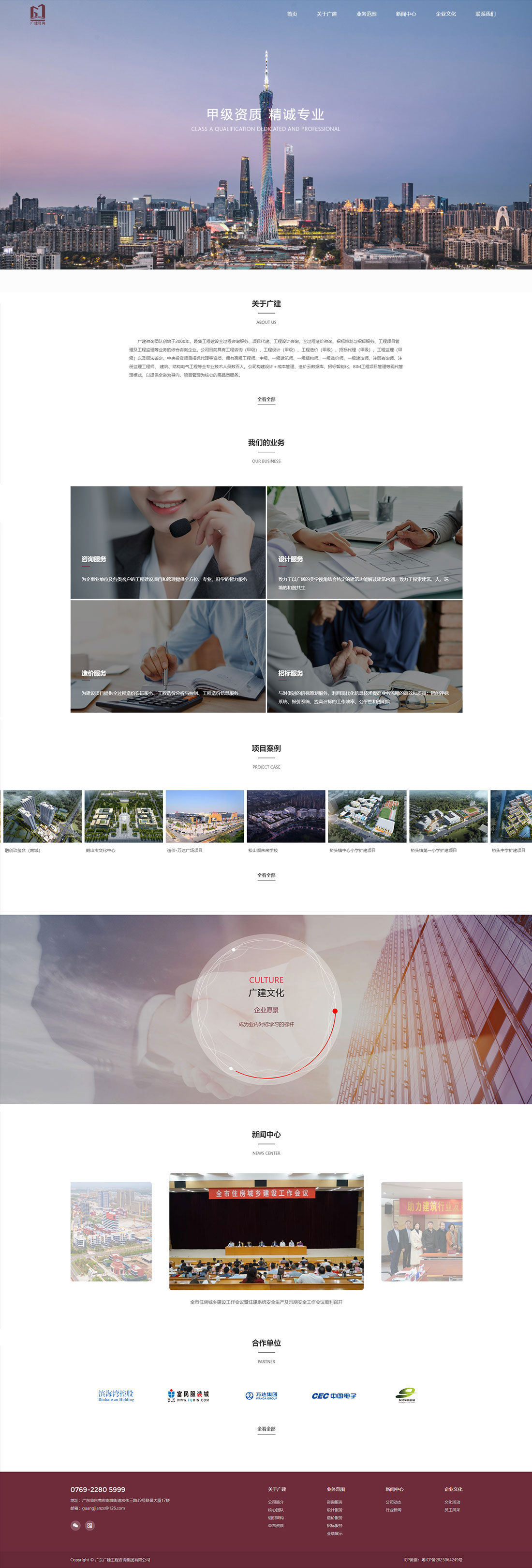 服務(wù)內(nèi)容:品牌企業(yè)網(wǎng)站建設(shè)、H5自適應(yīng)網(wǎng)站設(shè)計 廣建咨詢團(tuán)隊創(chuàng)始于2000年,是集工程建設(shè)全過程咨詢服務(wù)、項目代建、工程設(shè)計咨詢、全過程造價咨詢、招標(biāo)策劃與招標(biāo)服務(wù)、工程項目管理及工程監(jiān)理等業(yè)務(wù)的綜合咨詢企業(yè)。公司目前具有工程咨詢(甲級)、工程設(shè)計(甲級)、工程造價(甲級)、招標(biāo)代理(甲級)、工程監(jiān)理(甲級)以及司法鑒定、中央投資項目招標(biāo)代理等資質(zhì),擁有高級工程師、中級、一級建筑師、一級結(jié)構(gòu)師、一級造價師、一級建造師、注冊咨詢師、注冊監(jiān)理工程師、 建筑、結(jié)構(gòu)電氣工程等全專業(yè)技術(shù)人員數(shù)百人。公司構(gòu)建設(shè)計+成本管理、造價云數(shù)據(jù)庫、招標(biāo)智能化、BIM工程項目管理等現(xiàn)代管理模式,以提供全咨為導(dǎo)向,項目管理為核心的高品質(zhì)服務(wù)。